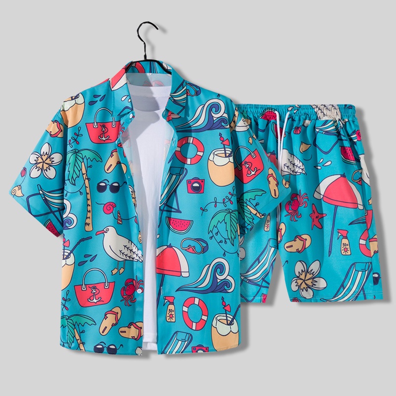 <p>🔥 Hawaiian Beach Pants for Men Short Sleeve Flower Shi...