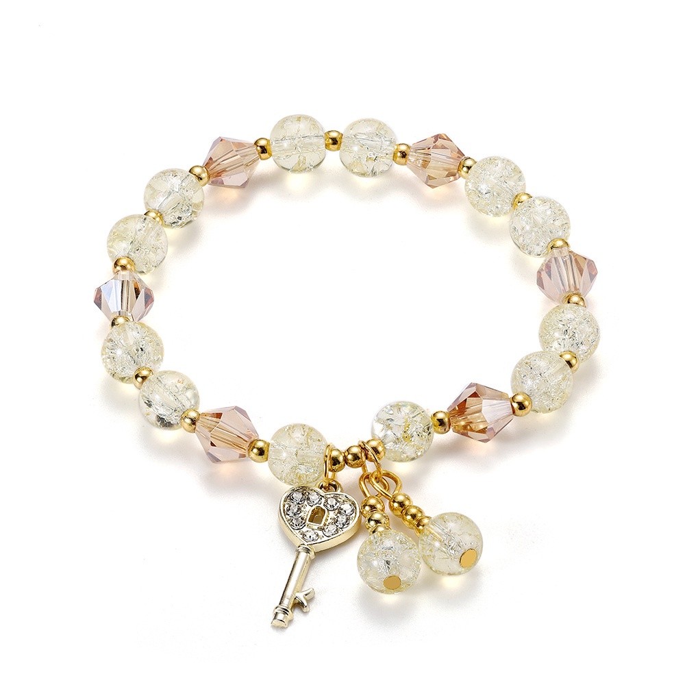 Ladies Bead Crystal Bracelet With Diamond Love Key Pendant B...
